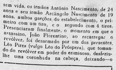A dupla fatalidade ganhou um coadjuvante. Quando o assassino tentou recarregar o revólver, um jogador do Próspera, Leo Pires, pegou a arma e "desferiu-lhe uma coronhada na cabeça". Aos empurrões, levou o homicida à delegacia na Rua João Pessoa, atual Detran.